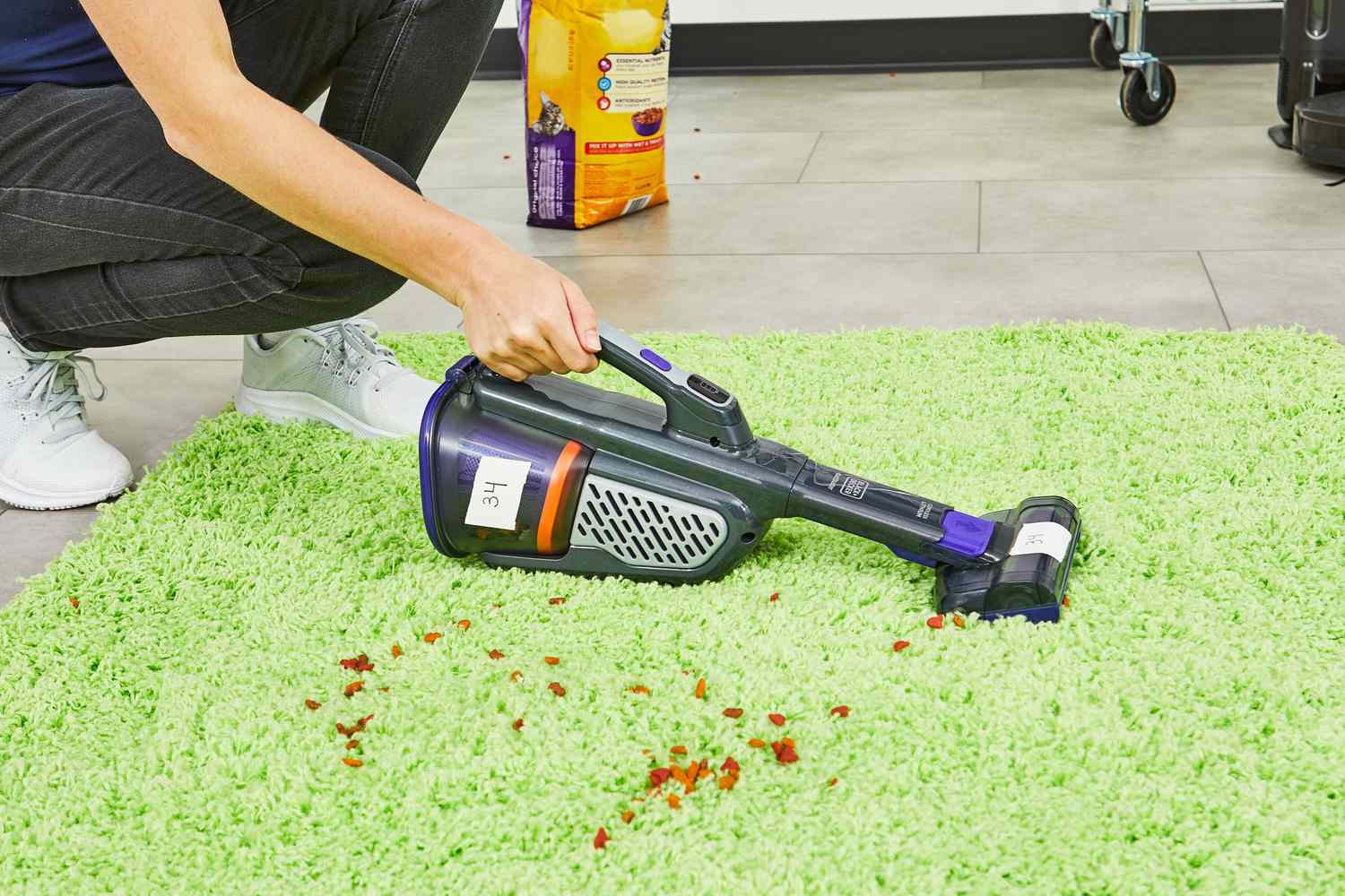 • Kitchen Quick-Clean: From spilled coffee grounds to scattered cereal, a handheld vacuum is faster and more effective than a broom for kitchen floor messes.